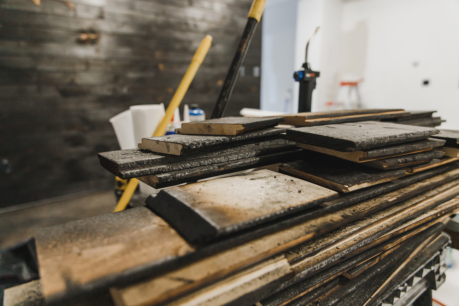 If you follow our social media, you may have noticed the trend of black and burnt looking wood in several of our projects lately. No, this is not the result of workplace accidents, but instead the use of a Japanese preservation technique called shou sugi ban.