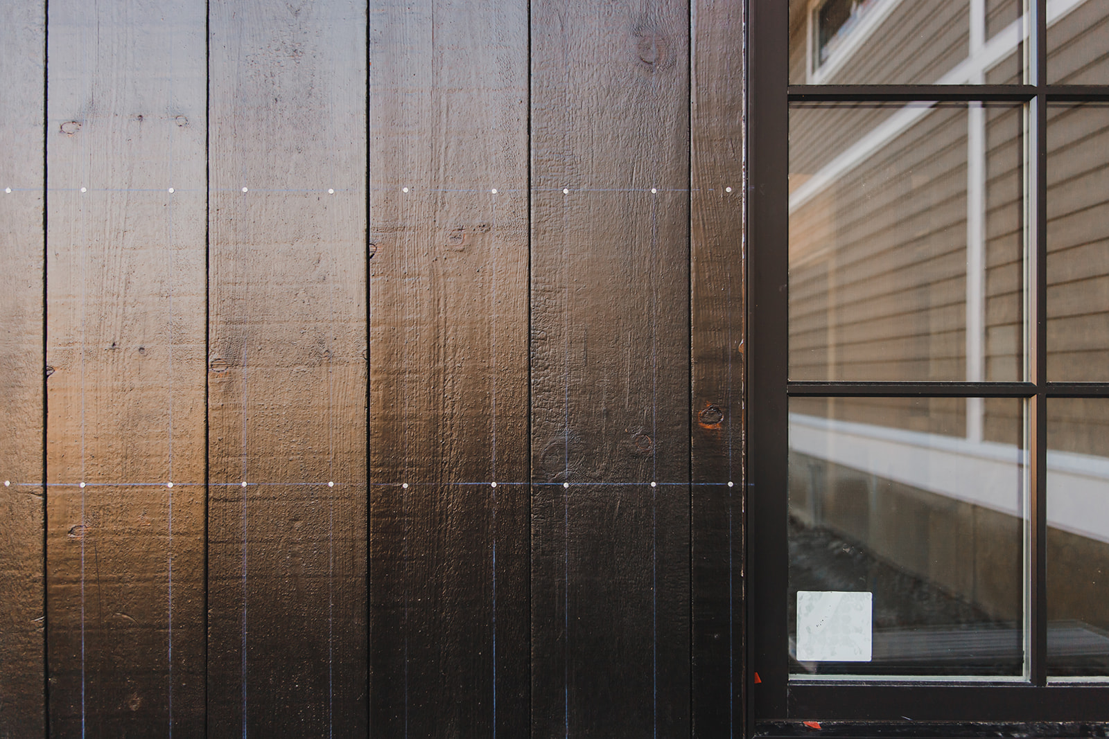 Shou sugi ban used for the exterior of the vestibule at Boston Honey Company in Holliston, MA.